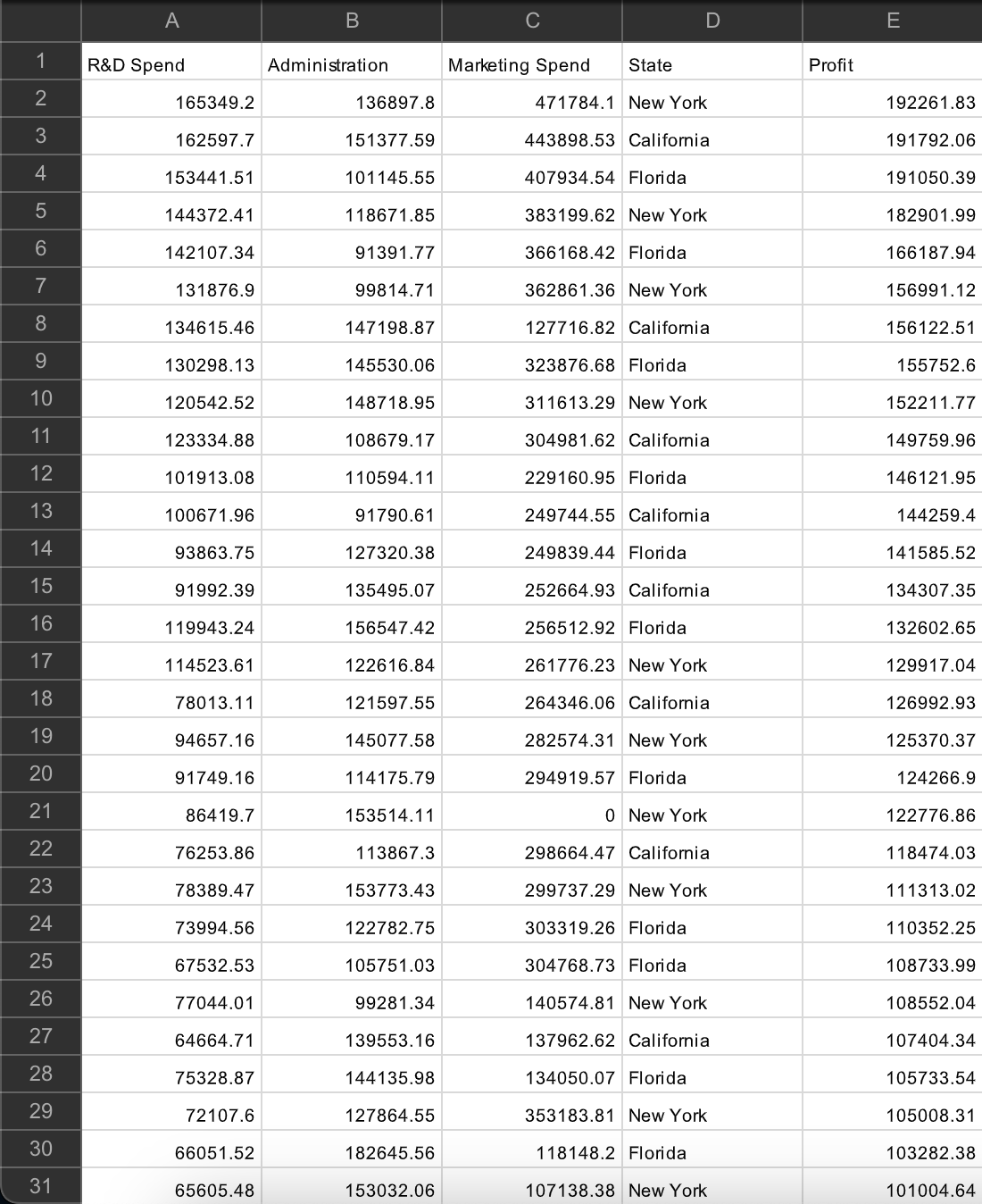 위와 같은 데이터 셋을 이용하여 투자해야할 스타트업을 선정하는 프로그램을 만들어본다.