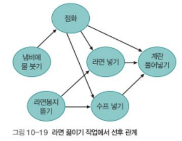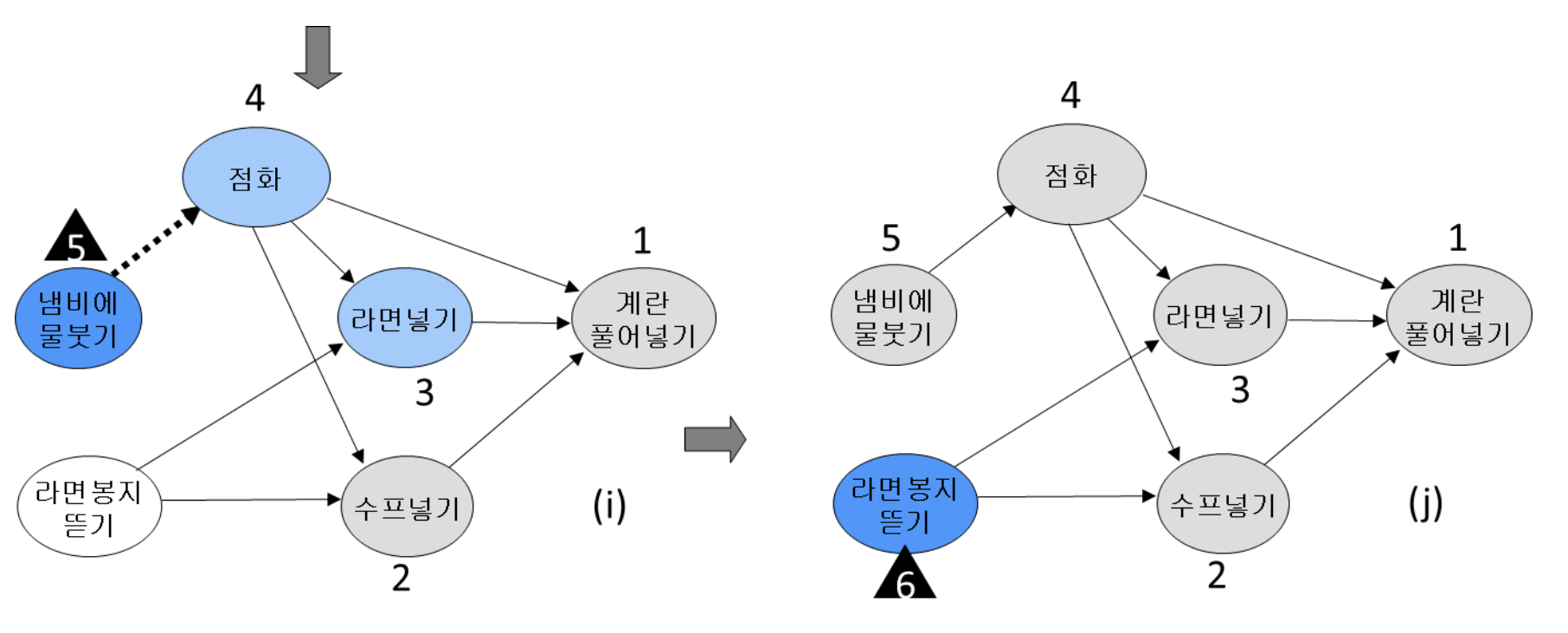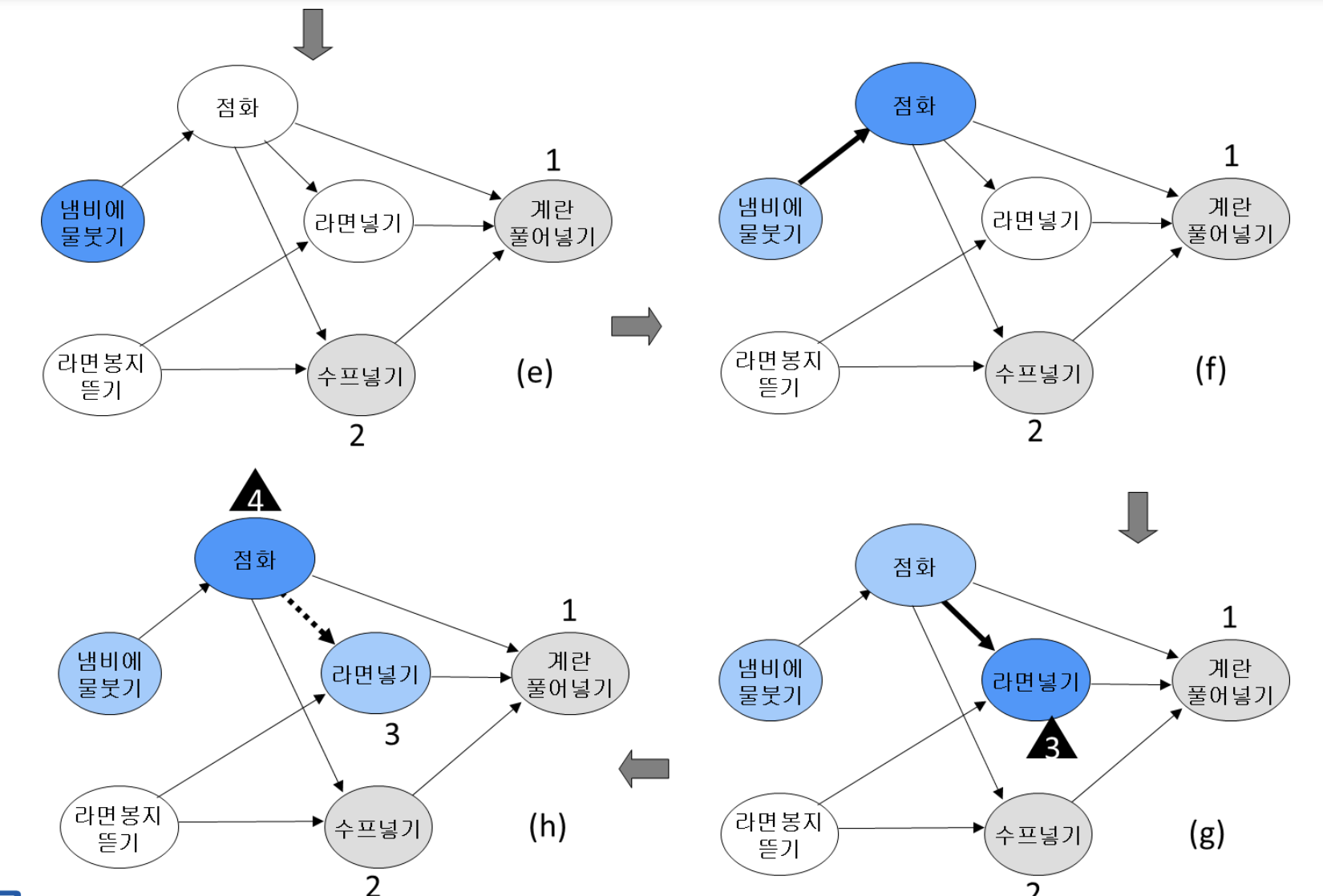 라면 끓이기에서 위상순서를 나타낸 그래프를 보면 위와 같다.