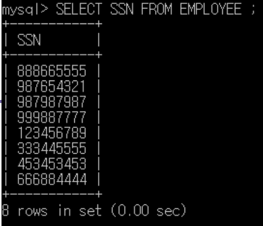 6. 데이터베이스에서 EMPLOYEE의 모든 SSN을 검색하라.