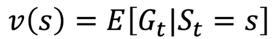 Value function v(s)는 state s에서의 가치를 나타내는 함수로 아래와 같이 식을 쓸 수 있다.