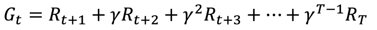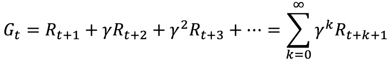 γ는 0과 1사이의 숫자이다. γ가 0이라면 즉각적인 보상만 신경쓰겠다는 거고 γ이 1에 가까워질수록 미래의 보상을 더 신경쓰겠다는 것이다.