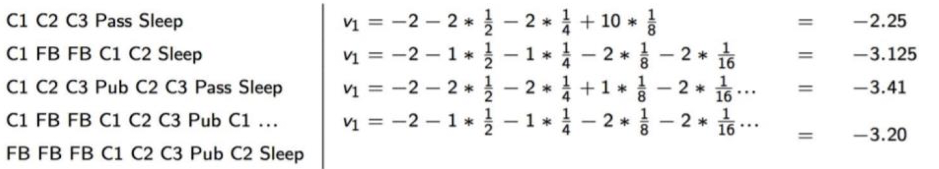 위와 같은 reward값이 부여되었을때 sample return들을 내보자. 시작점은 C1으로 두고 γ=0.5로 두고 실험을 해보면 아래와 같다.