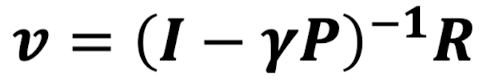Bellman equation은 v=R+γPv 형태의 matrice form으로 나타낼 수 있다.