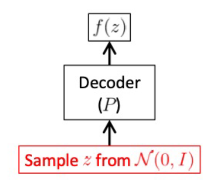 위에서 살펴본 구조로 ELBO를 maximize하면서 encoder와 decoder를 학습한 후, 우리는 이 학습된 decoder를 활용해서 우리가 원하는 data를 generate해야 한다. 이 과정에서는 위 그림과 같은 generator를 활용해서 data를 generate한다.