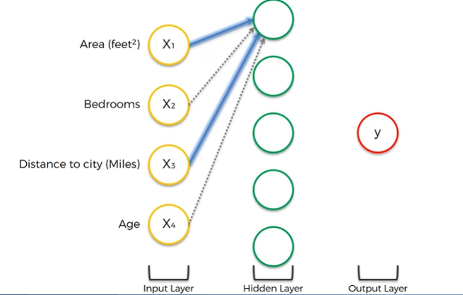 반면에 마지막 뉴런은 Age input하나만 받는다. 이 뉴런은 특별한 역할을 할 수 있다. 예를들어 100년 이상된 고풍스런 귀족 가옥의 가치를 알아보는 몇몇 사람들을 위해 가치있는 부동산을 찾는 뉴런이 될 수 있는 것이다.